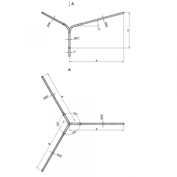 Трехрожковый кронштейны К13-0,5-1,2-1-1 предназначен для крепления светильника на трубчатой опоре освещения. Данные кронштейны предназначены для установки на опоры ОГК, ОГС, ОС, ОТ и т.д.