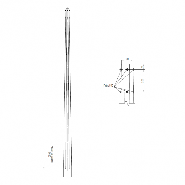 Опора освещения ОГКп-8 (1,5) исп. 2, где: